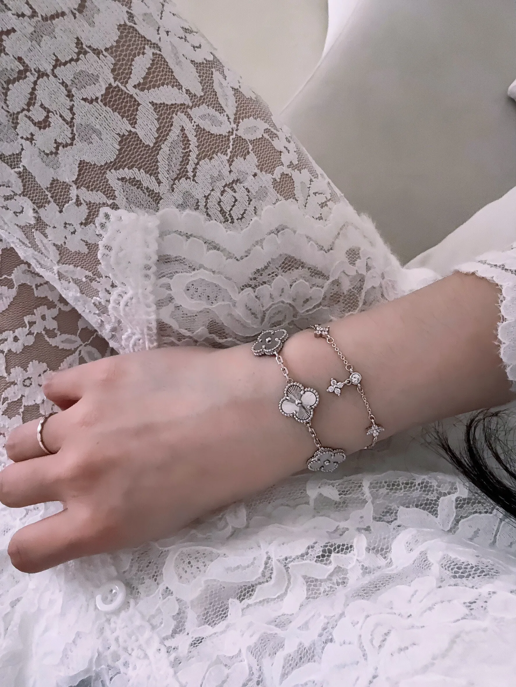 純銀_VAN幸運四葉草梵克雅_鎖骨手鏈